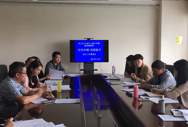 继前一天召开创文工作第九次周例会之后,西山区教育局于7月5日迅速召开“攻坚冲刺 巩固提升”创文工作推进会。教育局领导班子成员,十个片区督查组组长、联络员、创文办公室部分工作人员参加了本次会议。本次会议主要有三个议题: